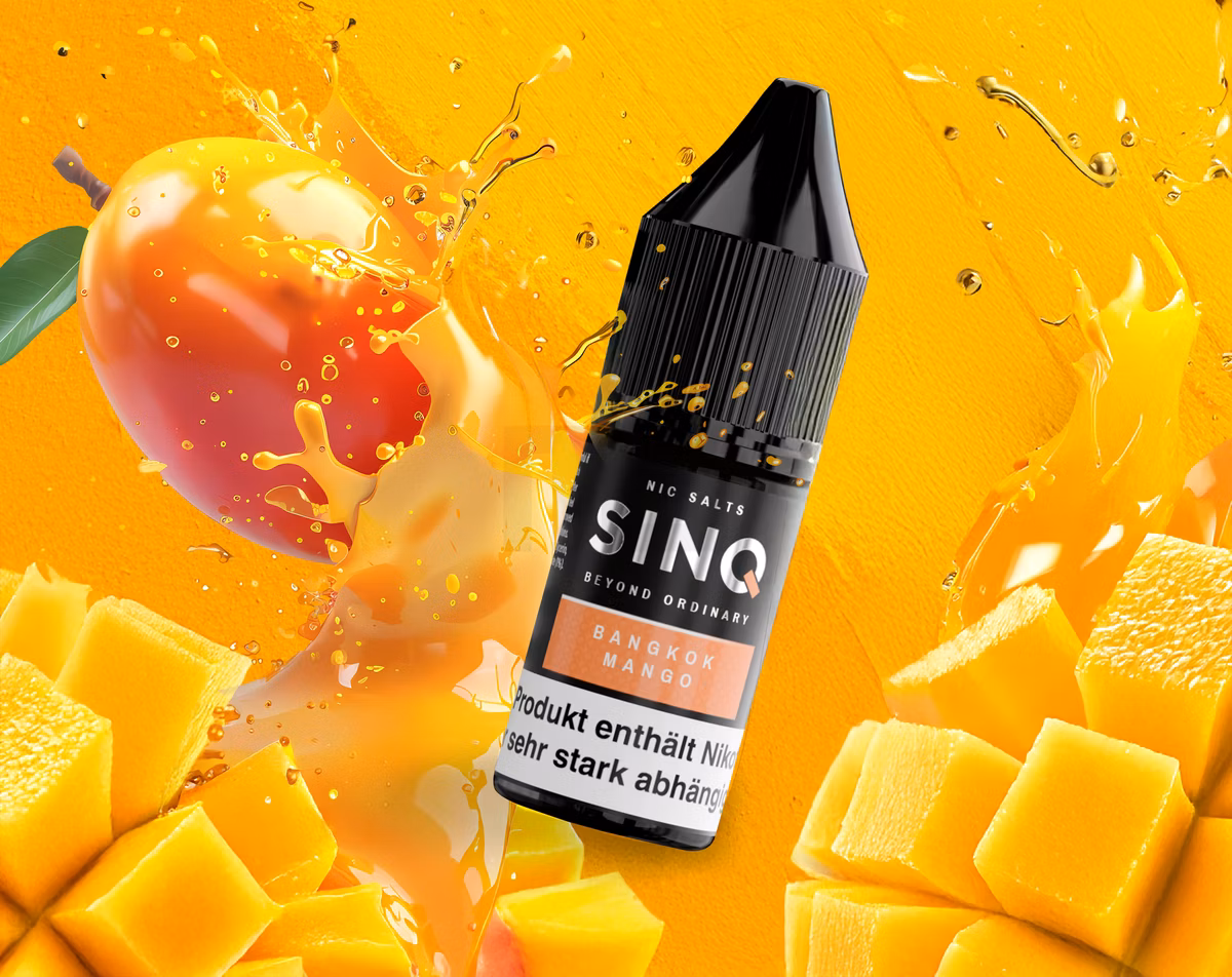 SINQ - Bangkok Mango - Nikotinsalz Liquids - 10ml - 10mg SINQ Nikotinsalz Liquids – Premium Dampferlebnis Herzlich willkommen in der Welt der SINQ Nikotinsalz Liquids, Ihrem Tor zu einem außergewöhnlichen Dampfgenuss hier bei Freshishastore.com. Wenn Sie auf der Suche nach einem sanften, aber dennoch intensiven Nikotinerlebnis sind, dann sind Sie genau richtig. SINQ steht für höchste Qualität und innovative Geschmackskreationen, die speziell für anspruchsvolle Dampfer entwickelt wurden. Diese Liquids repräsentieren eine neue Generation des Vapings, die Komfort und Zufriedenheit perfekt vereint. Entdecken Sie eine Marke, die über das Gewöhnliche hinausgeht und Maßstäbe setzt. Tauchen Sie ein in das Sortiment und finden Sie Ihren persönlichen Favoriten. Wir bieten Ihnen ein umfassendes Erlebnis, von der Produktauswahl bis zum schnellen Versand. SINQ Liquids sind das Ergebnis jahrelanger Erfahrung und Leidenschaft für erstklassige E-Liquids. Vertrauen Sie auf Premium-Qualität, die man schmeckt und fühlt. Entdecke die Welt der SINQ Nikotinsalz Liquids Die SINQ Nikotinsalz Liquids wurden sorgfältig konzipiert, um ein unvergleichlich sanftes Dampferlebnis zu bieten. Anders als herkömmliche Liquids mit freiem Nikotin ermöglichen Nikotinsalze eine schnellere und effizientere Nikotinaufnahme. Dies führt zu einer raschen Befriedigung des Nikotinbedarfs ohne den oft als unangenehm empfundenen starken Throat-Hit (Kratzen im Hals). Besonders geschätzt wird dies von Umsteigern von der Tabakzigarette sowie von Dampfern, die höhere Nikotinkonzentrationen bevorzugen. SINQ hat diese Technologie perfektioniert und kombiniert sie mit exquisiten Aromen. Diese Liquids sind optimal auf die Verwendung in modernen Pod-Systemen und für das MTL (Mouth-to-Lung) Dampfen abgestimmt. Erleben Sie den Unterschied, den hochwertige Zutaten und präzise Herstellung ausmachen können. Jede Flasche SINQ ist ein Versprechen für konsistenten Geschmack und höchste Reinheit. Warum Nikotinsalz Liquids? Die Vorteile auf einen Blick Nikotinsalz Liquids, oft auch als Nic Salts bezeichnet, bieten eine Reihe signifikanter Vorteile gegenüber traditionellen E-Liquids. Der Hauptvorteil liegt in der chemischen Struktur des Nikotins. Es ist an eine Säure gebunden, was den pH-Wert senkt und das Dampfen auch bei höheren Nikotinstärken spürbar sanfter macht. Dies reduziert das Kratzen im Hals erheblich. Ein weiterer Pluspunkt ist die schnellere Anflutung des Nikotins im Körper, ähnlich der einer Tabakzigarette. Dies kann besonders für ehemalige Raucher hilfreich sein, um das Verlangen effektiv zu stillen. Nikotinsalz Liquids eignen sich hervorragend für Geräte mit geringerer Leistung, wie Pod-Systeme. Sie benötigen weniger Dampfproduktion, um eine zufriedenstellende Nikotinmenge zu liefern. Dies schont nicht nur den Akku, sondern auch die Coils und sorgt für einen diskreteren Dampf. Die Aromen kommen in Nic Salts oft klarer und intensiver zur Geltung. Sanfter Throat-Hit: Angenehmes Dampfen auch bei höheren Nikotinstärken. Schnelle Nikotinaufnahme: Effektive und schnelle Befriedigung des Nikotinbedarfs. Ideal für Pod-Systeme, RDL & MTL: Optimiert für Geräte mit geringerer Leistung. Effizienter Verbrauch: Weniger Liquidverbrauch für die gleiche Nikotinwirkung. Klare Aromenentfaltung: Intensiver und unverfälschter Geschmack. Gut für Umsteiger: Simuliert das Gefühl einer Tabakzigarette besser. Diese Eigenschaften machen Nikotinsalz E-Liquids zu einer ausgezeichneten Wahl für viele Dampfer. Sie bieten eine moderne Alternative, die Komfort und Effizienz in den Vordergrund stellt. SINQ Liquids: Qualität "Made in Germany & UK" Ein herausragendes Merkmal der SINQ Nikotinsalz Liquids ist ihre Herkunft und die damit verbundenen Qualitätsstandards. Die Produktion erfolgt unter strengsten Kontrollen sowohl in Deutschland als auch in Großbritannien. Diese beiden Standorte sind bekannt für ihre hohen Anforderungen an Sicherheit, Reinheit und Produktionshygiene im Bereich der E-Liquids. SINQ verpflichtet sich zur Verwendung ausschließlich hochwertigster Rohstoffe. Dies beginnt bei der Auswahl der Basiskomponenten und reicht bis zu den komplexen Aromenkompositionen. Die Marke legt besonderen Wert darauf, dass alle Inhaltsstoffe den geltenden europäischen Richtlinien entsprechen und diese sogar übertreffen. Dieser Qualitätsanspruch sorgt für ein sicheres und genussvolles Dampferlebnis bei jedem Zug. Vertrauen Sie auf eine Marke, die keine Kompromisse bei der Qualität eingeht. Der Herstellungsprozess: Transparenz und Exzellenz Hinter jedem SINQ Liquid steht ein sorgfältiger und kontrollierter Herstellungsprozess. Von der Rohstoffanalyse bis zur Abfüllung wird jeder Schritt genau überwacht. Moderne Produktionsanlagen in Deutschland und UK gewährleisten eine gleichbleibend hohe Qualität. Die Chargenrückverfolgung sorgt für zusätzliche Sicherheit und Transparenz. SINQ investiert kontinuierlich in Forschung und Entwicklung, um die Produkte stetig zu verbessern. Dabei wird nicht nur auf Geschmack, sondern auch auf die Reinheit und Sicherheit der Liquids geachtet. Umweltaspekte spielen ebenfalls eine Rolle, wie die Verwendung von nachhaltig gewonnenem Nikotin zeigt. Dieser ganzheitliche Ansatz unterscheidet SINQ von vielen anderen Marken auf dem Markt. Sie können sich darauf verlassen, ein Produkt zu erhalten, das mit Sorgfalt und Expertise hergestellt wurde. Feinste Aromen aus Deutschland: Ein Versprechen an den Geschmack Das Herzstück eines jeden E-Liquids ist sein Aroma. SINQ setzt hierbei auf feinste deutsche Aromen, die für ihre Intensität und Authentizität bekannt sind. Die Aromaexperten von SINQ kreieren komplexe und ausgewogene Geschmacksprofile, die sowohl vertraute als auch überraschend neue Noten bieten. Ob fruchtig, süß, erfrischend oder cremig – die Aromenpalette von SINQ ist vielfältig und trifft unterschiedlichste Vorlieben. Die Qualität der Aromen sorgt dafür, dass der Gesc